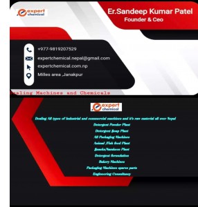 We are dealing all types of industrial and commercial machines all over Nepal also we providing following facility Detergent powder plant Detergent formulation Detergent soap Snacks machines Engineering Consultancy Animal feed Plant Bakery Machines Business consultancy Packaging machines Packaging machine spares parts And many more