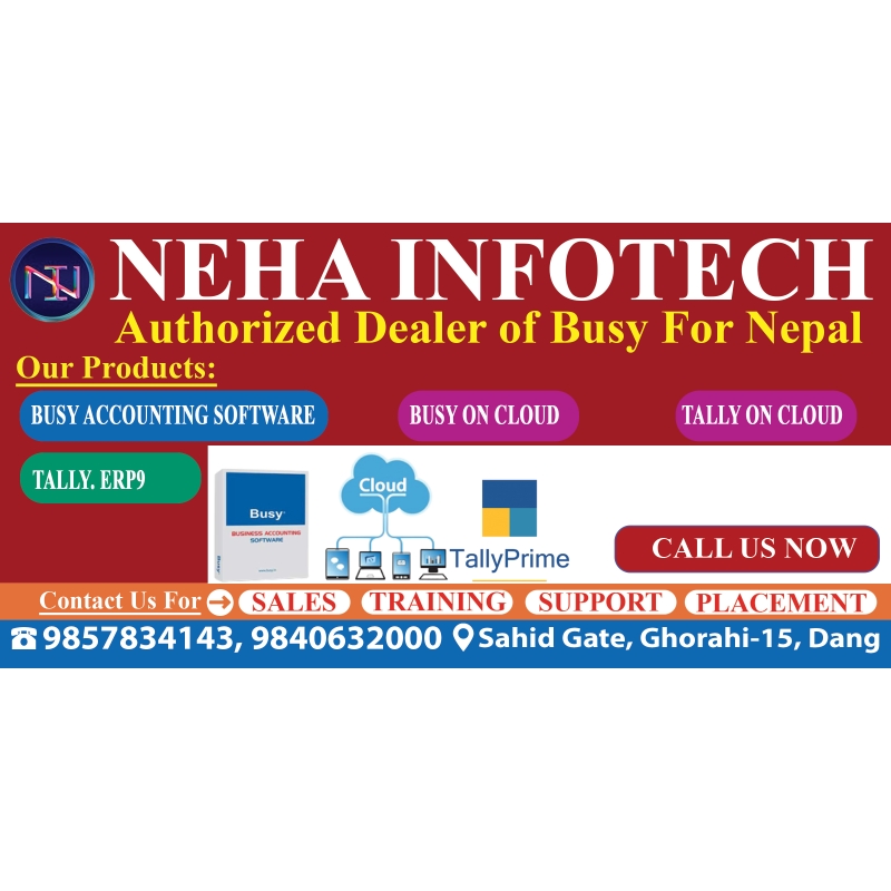 Neha Infotech is the authorized distributor of Busy Accounting Software in Nepal. For over 10 years, we have been helping businesses of all sizes manage their finances efficiently with our comprehensive accounting solutions.